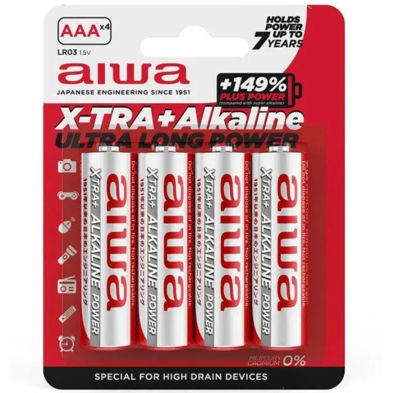Pack de 4 Pilas AAA Aiwa X-TRA+Alcaline LR03/ 1.5V/ Alcalinas