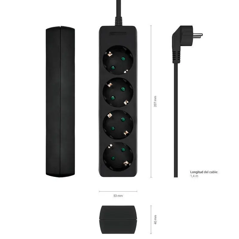AISENS – BASE MULTIPLE 4 TOMAS SIN INTERRUPTOR CON CABLE 3×1.5MM2, NEGRO, 1.4M