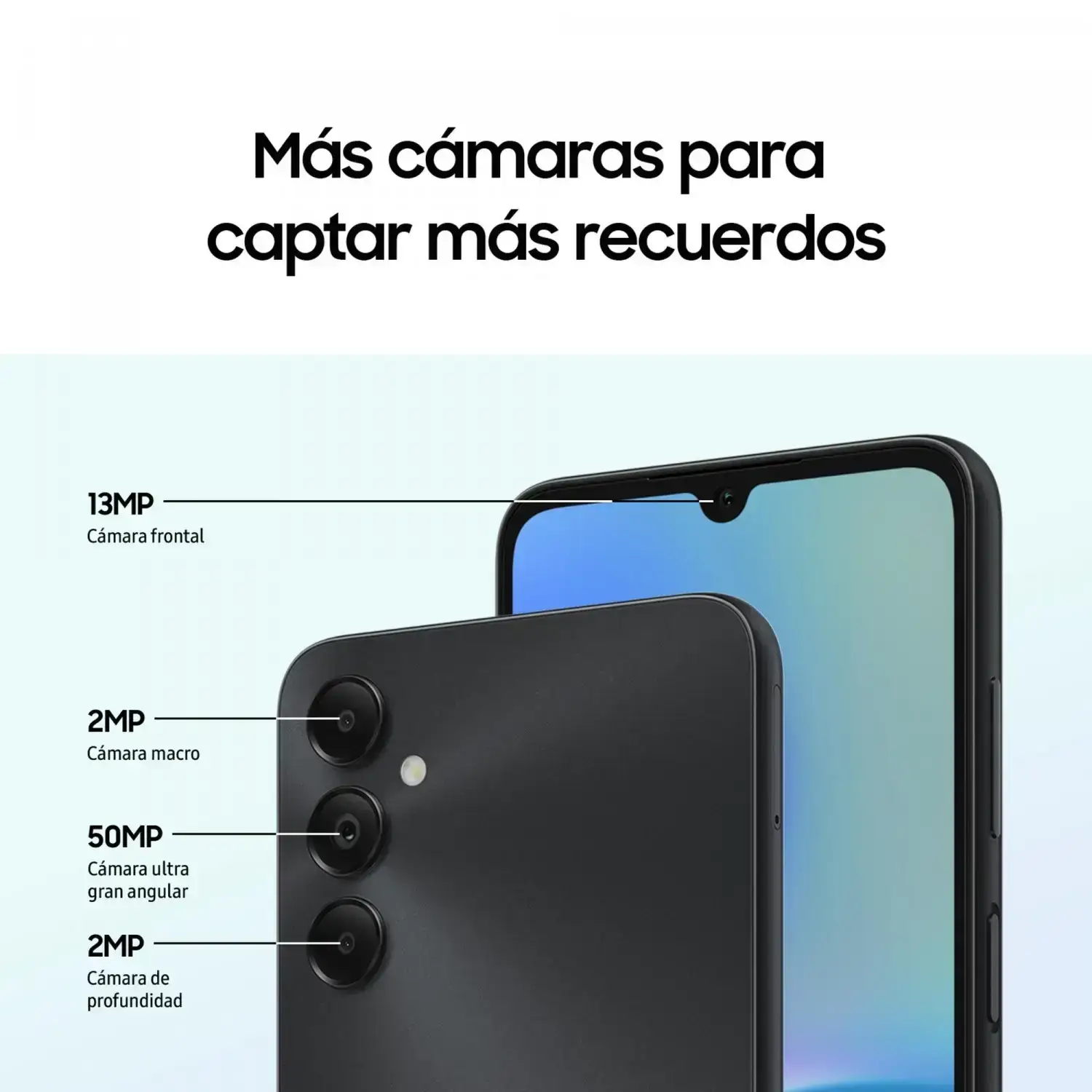 Detalle de cámaras: 50 MP (F1.8) Principal; 2 MP (F2.4); Profundidad; 2 MP F2.4) Macro; 13 MP (F2.0) Frontal